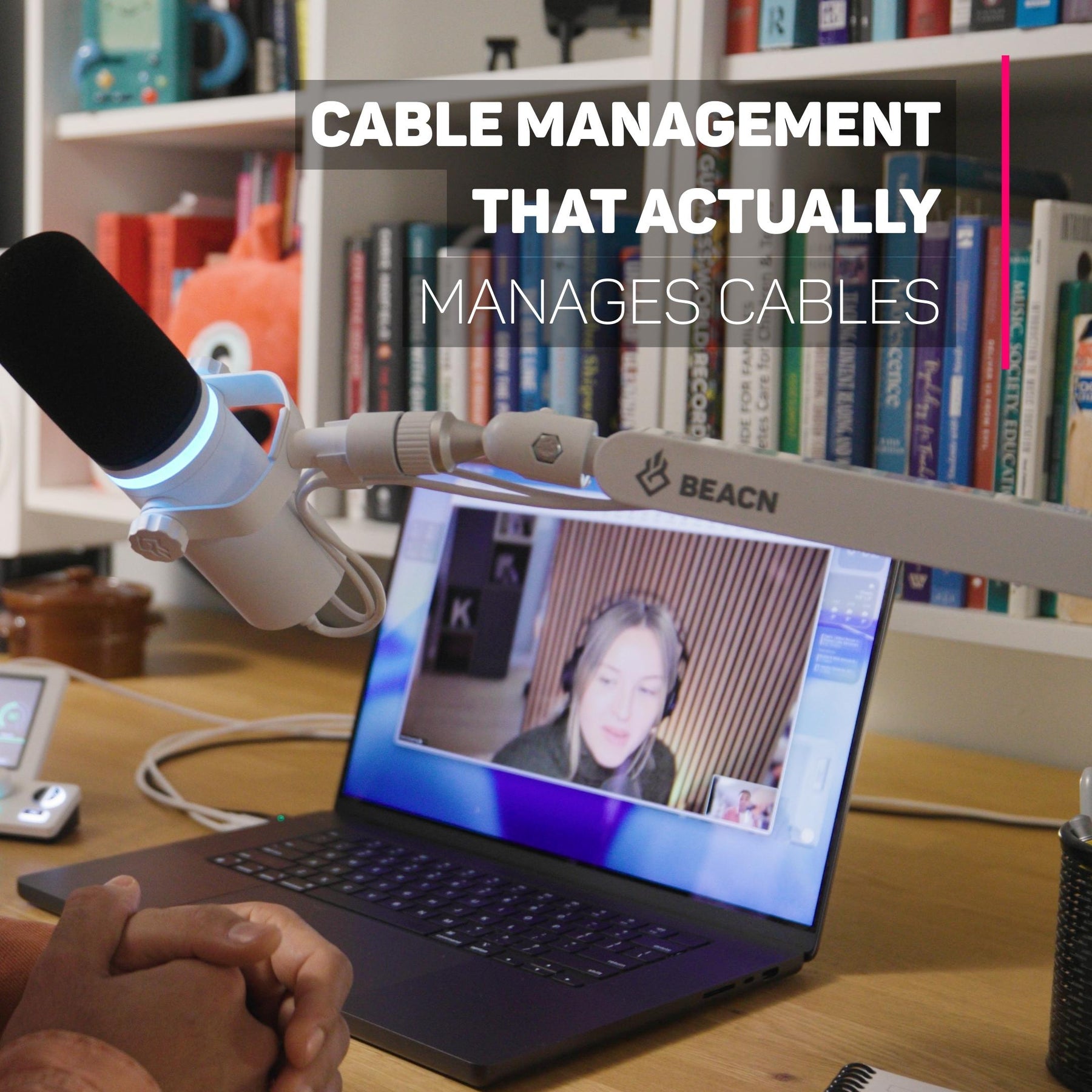 • Inbyggd kabelkanal: Trött på trassliga kablar? BEACN Mic Stand har en inbyggd kabelkanal som låter dig dra kablarna snyggt längs stativets undersida. Säg hejdå till kabelkaos!