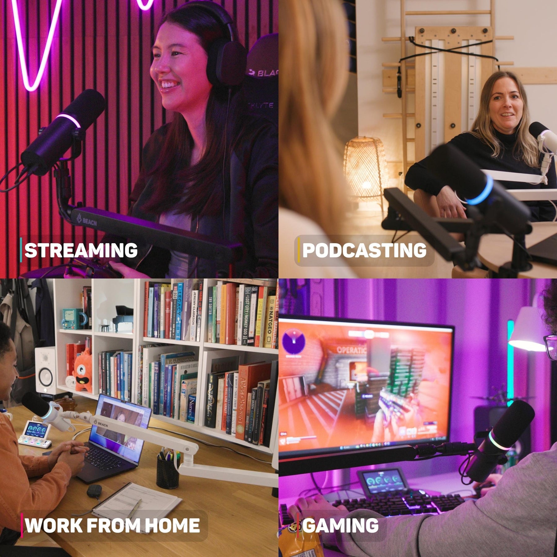 • Ljusa och mörka färger: Oavsett om du har en ljus eller mörk estetik för din setup, har vi det du behöver med ett stilrent mörkt eller vitt färgschema. Våra färger matchar BEACN Mic och ser fantastiska ut tillsammans.